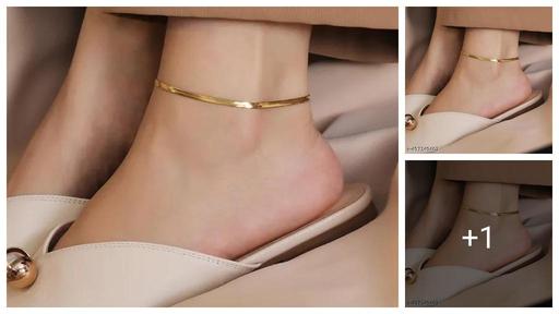Name: Snake Chain Anklet in 92.5 Sterling Silver | Silver Plated with Authentication Certificate | For Women & Girls | Wedding, Party, Office Base Metal: Stainless Steel Plating: Gold Plated Stone Type: No Stone Sizing: Adjustable Type: Chain Anklet Net Quantity (N): 1 Sizes:Free Size Country of Origin: India